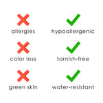 Hypoallergenic: Safe materials for your skin. We guarantee it won't cause irritation or leave green stains.