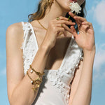Our jewelry is crafted from top-quality stainless steel and then plated with 18k gold through Physical Vapor Deposition (PVD).