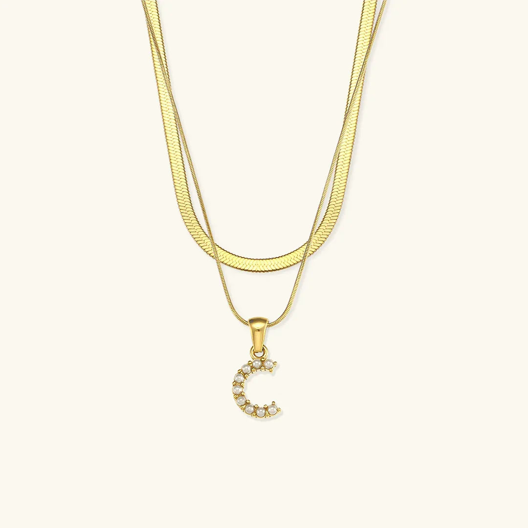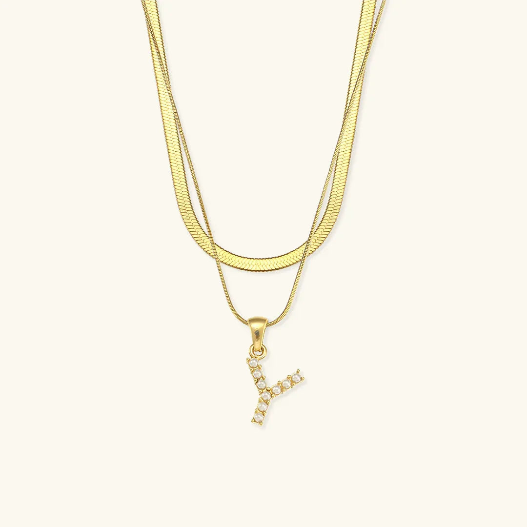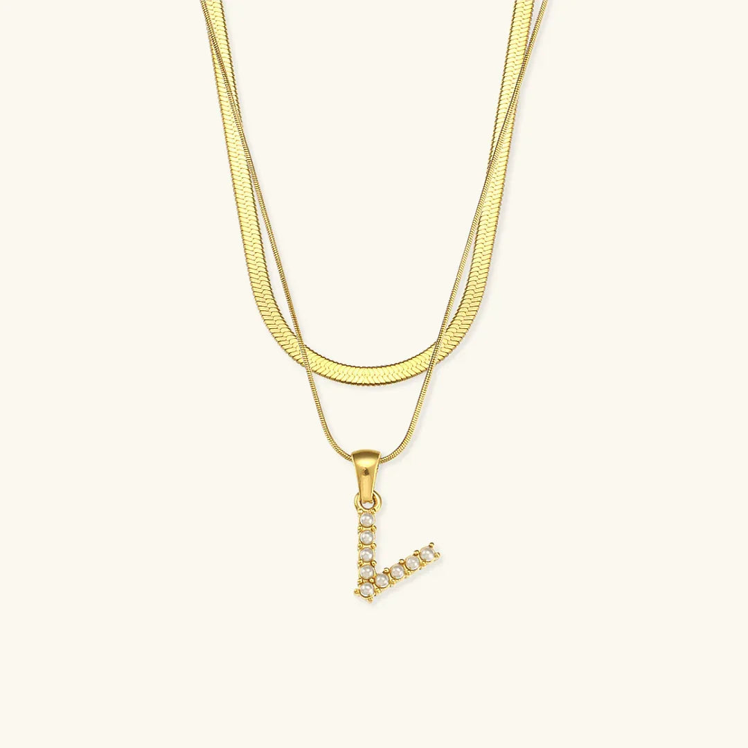 Collier Fiona à plusieurs rangs en or avec initiale