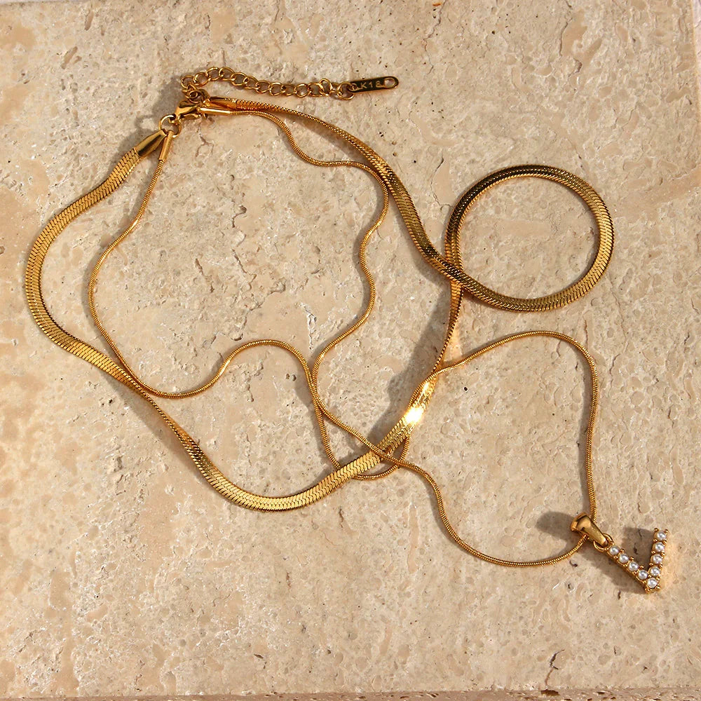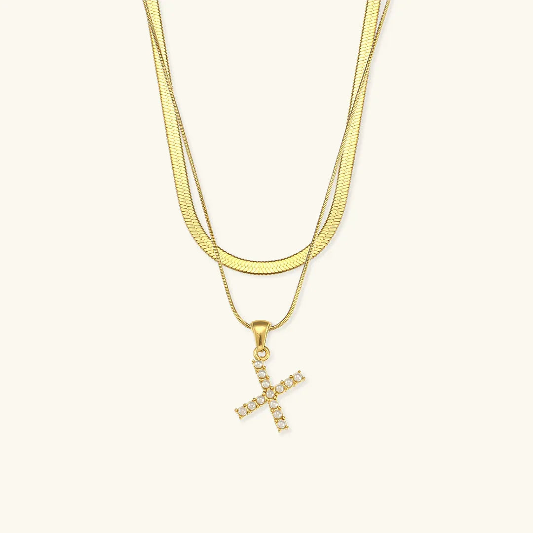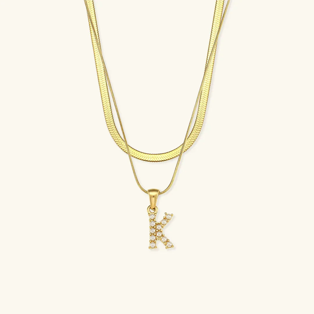 Collier Fiona à plusieurs rangs en or avec initiale