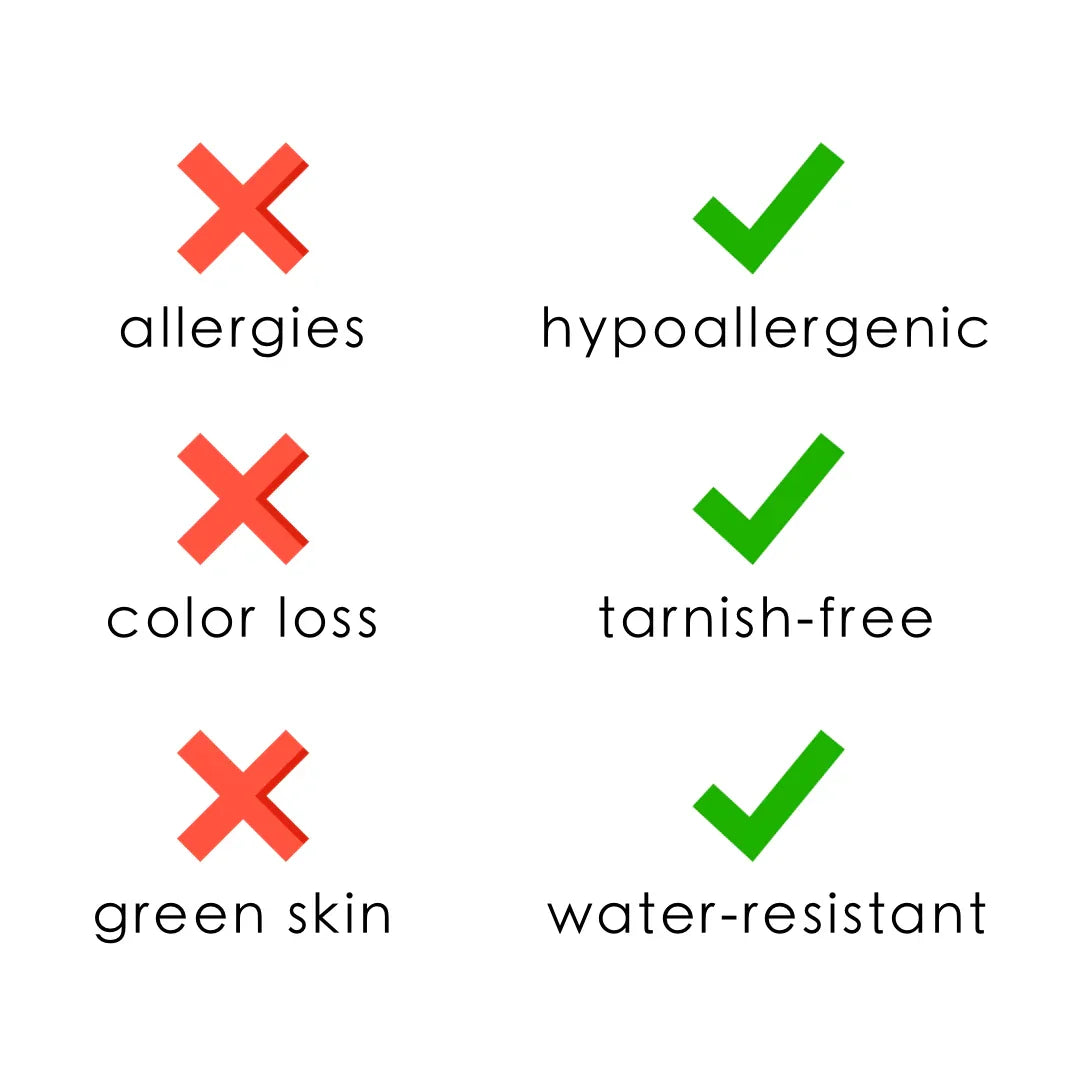 Water-Resistant: Jewelry designed for modern life. Resistant to water and sweat, ready for any occasion.