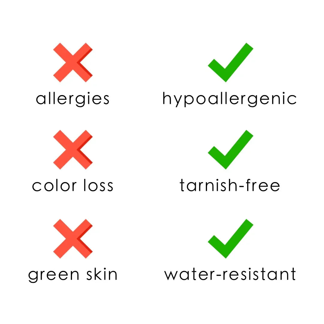 Our jewelry is crafted from top-quality stainless steel and then plated with 18k gold through Physical Vapor Deposition (PVD).